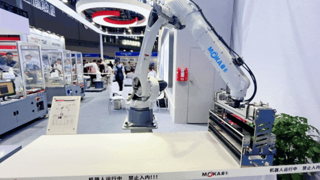 藦卡機器人奧太、江龍智能、創想智控、柏楚等公司合作,將國產品牌的實力展現給大家。現場藦卡共呈現10臺工作站,展位參觀觀眾絡繹不絕,國內外觀眾紛紛駐足,眾多行業專家和觀眾對針對藦卡機器人展機及解決方案表現出濃厚的興趣和高度認可。